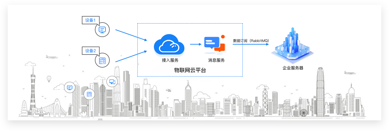 | 数据订阅流转 | 设备接入米兰·(milan)物联网平台后,企业服务端可以通过配置服务端订阅,直接订阅产品下多种类型的消息,物联网平台会将产品下所有设备中已订阅类型的消息,转发至您的服务器。 |